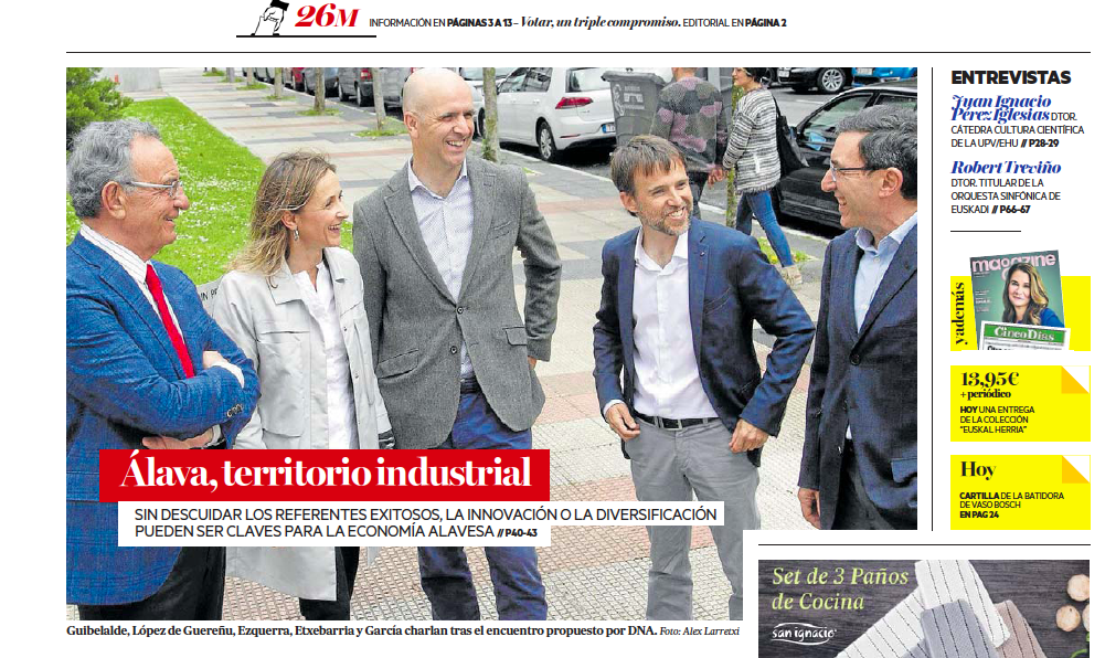 En un amplio reportaje publicado el domingo, 26 de mayo, empresarios consultados por Diario de Noticias de Alava, entre los que se encontraba Roberto García en representación de Electro Alavesa, hablan y debaten sobre “otra Álava” que hay que saber potenciar. La economía alavesa, ante la histórica dependencia de dos grandes empresas multinacionales (Mercedes y Michelin), apuesta por complementar sus fortalezas.